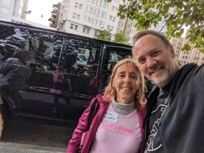 The names of the organizations hosting the event, Veterans for Peace and Women Against Military Madness, both longstanding antiwar groups going back many decades right up to the present, are put in quotes in the piece on IGD. This is because the authors don’t think the groups are really in favor of peace or against militarism, because if they were, they would somehow or other find it in themselves to support all the US military funding of the Ukrainian war effort, and they would not be calling for peace talks. Thus, these groups are considered to be pro-Russian invasion and pro-Putin by the black-and-white thinking of anarcho-puritanism.
